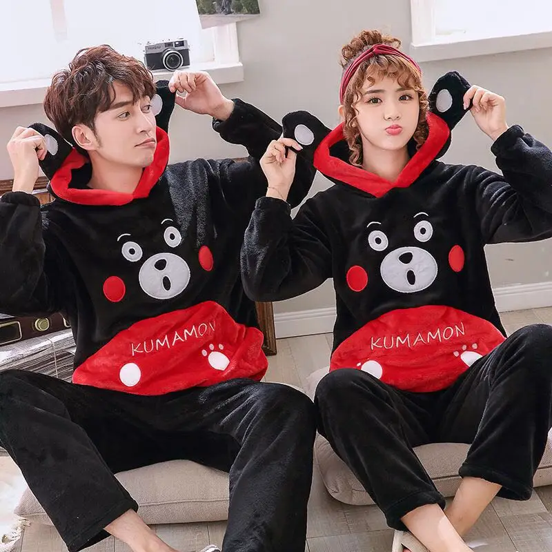 Men sleep wear pyjama night wear plus size XS-6XL white sets warm lover hooded sleepwear women cartoon coral fleece lounge set